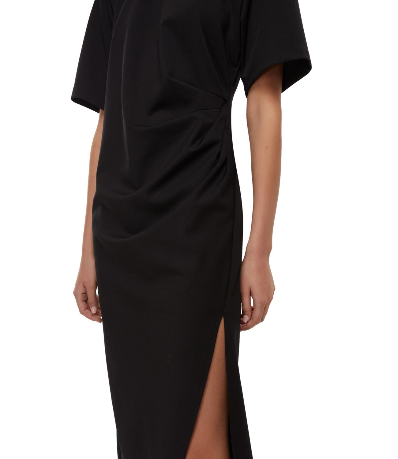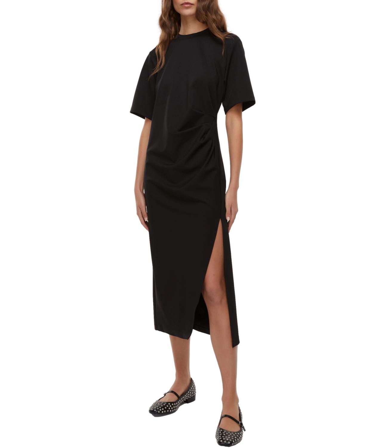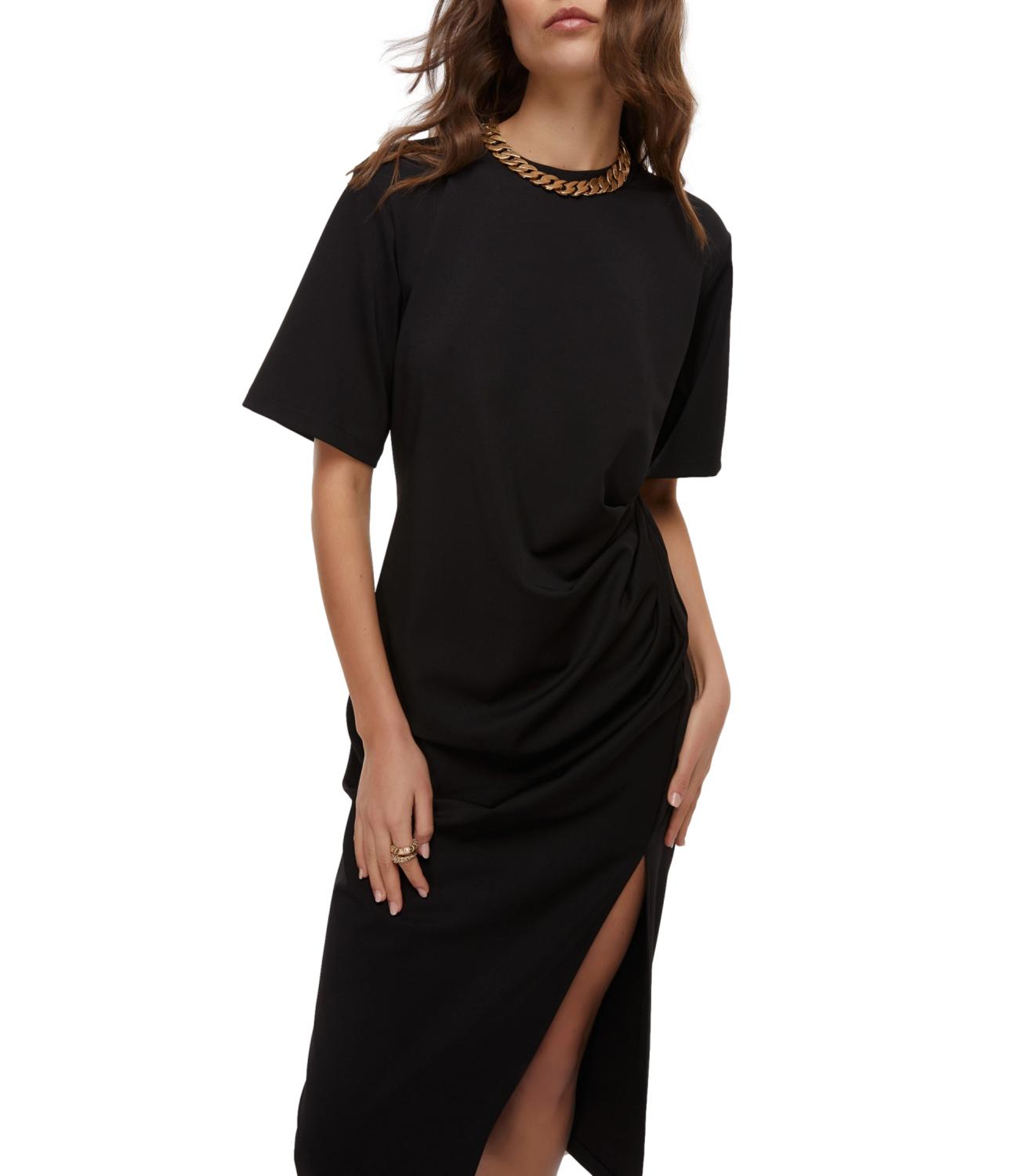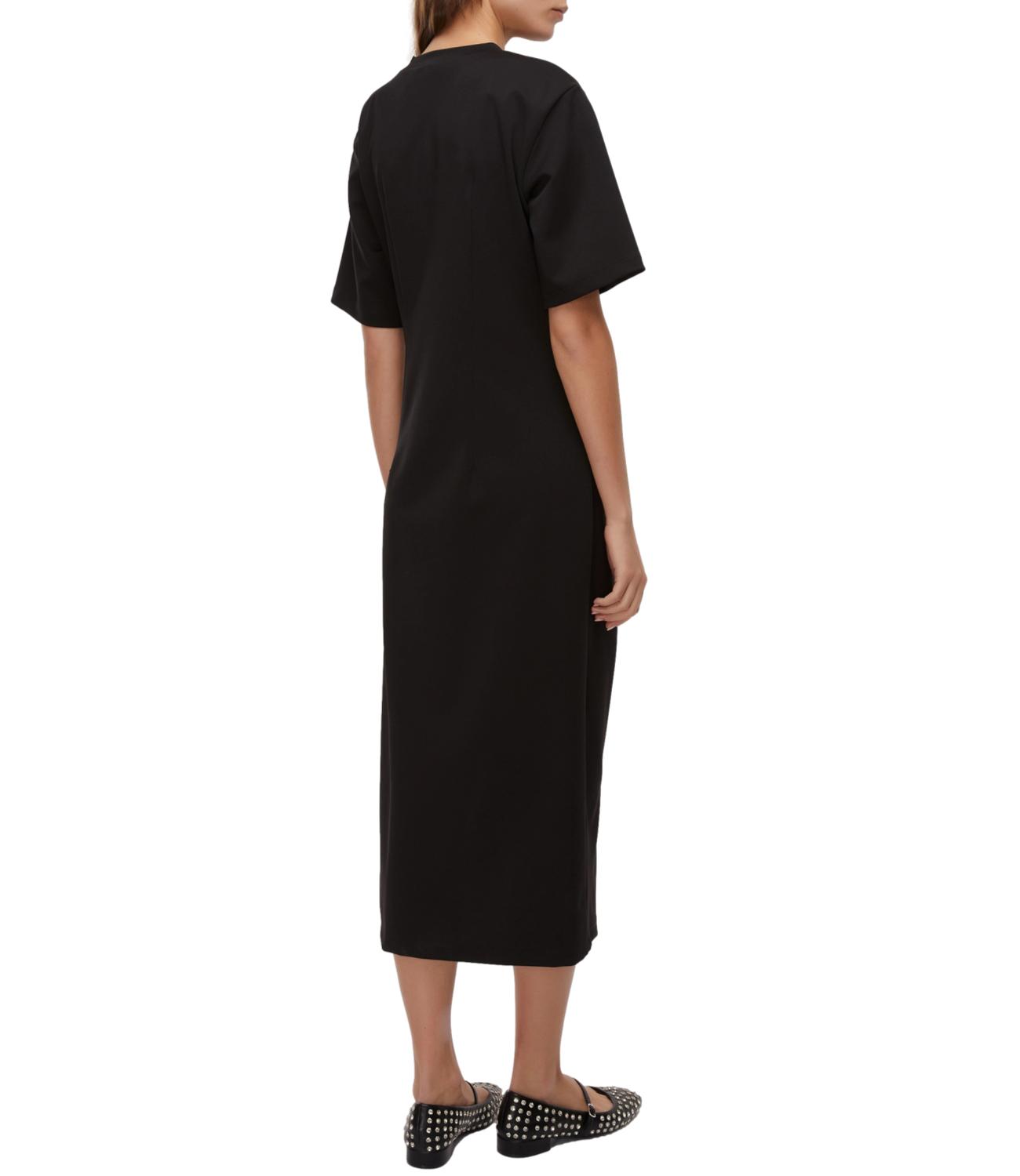 Con le sue linee essenziali e la costruzione a t-shirt, questo abito in jersey interpreta lo stile contemporaneo con freschezza e una nota urbana. Lo spacco laterale si apre sulla sinistra per una femminilità tutta da svelare.