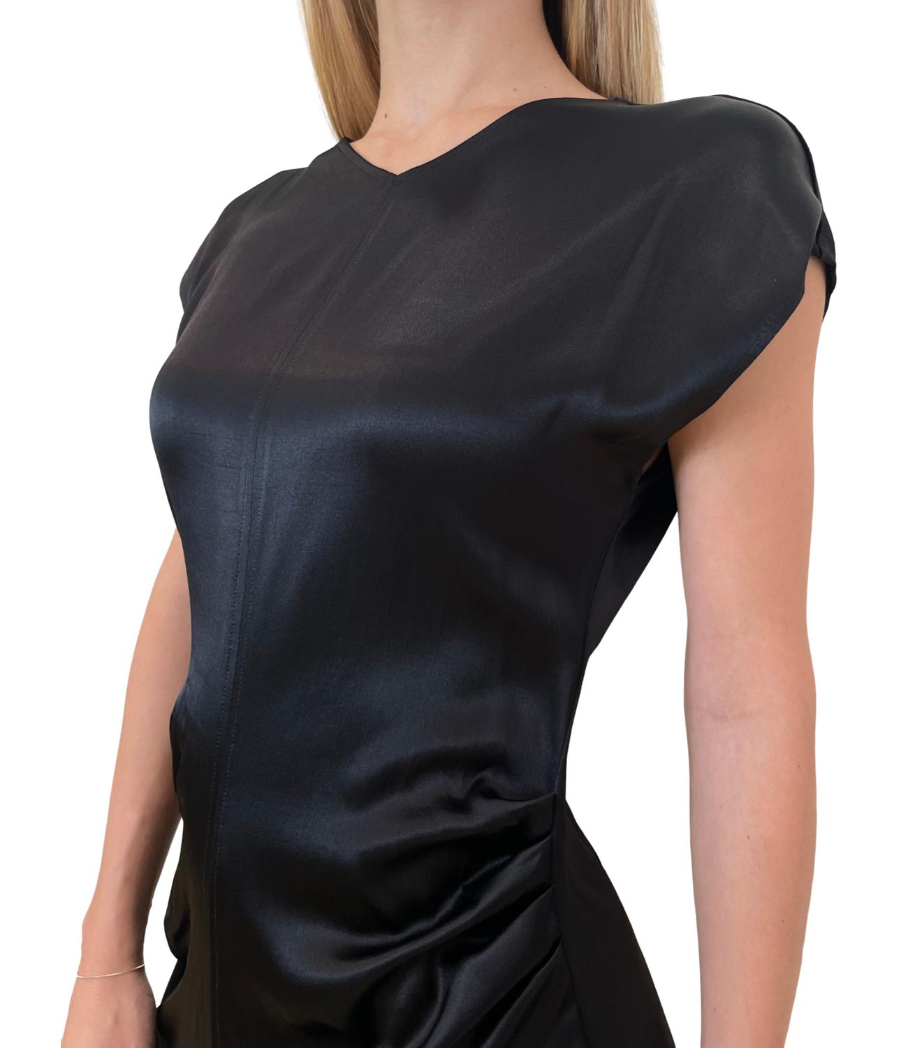 In raso stretch dall'aspetto lucido, questo abito è pensato per accompagnarti con disinvoltura in ogni momento della giornata. Con piccole pieghe che definiscono la silhouette.