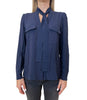 Con la sciarpina da annodare al collo e le tasche al petto, questa camicia mixa allure casual con note più femminili. Perfetta in ufficio con balzer e pants sartoriali, diventa sofisticata con una gonna a tubino e slingback.