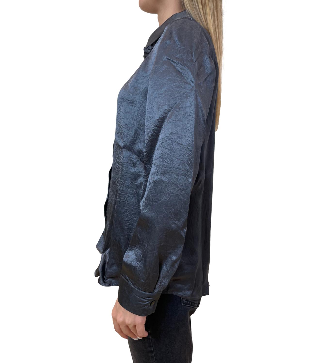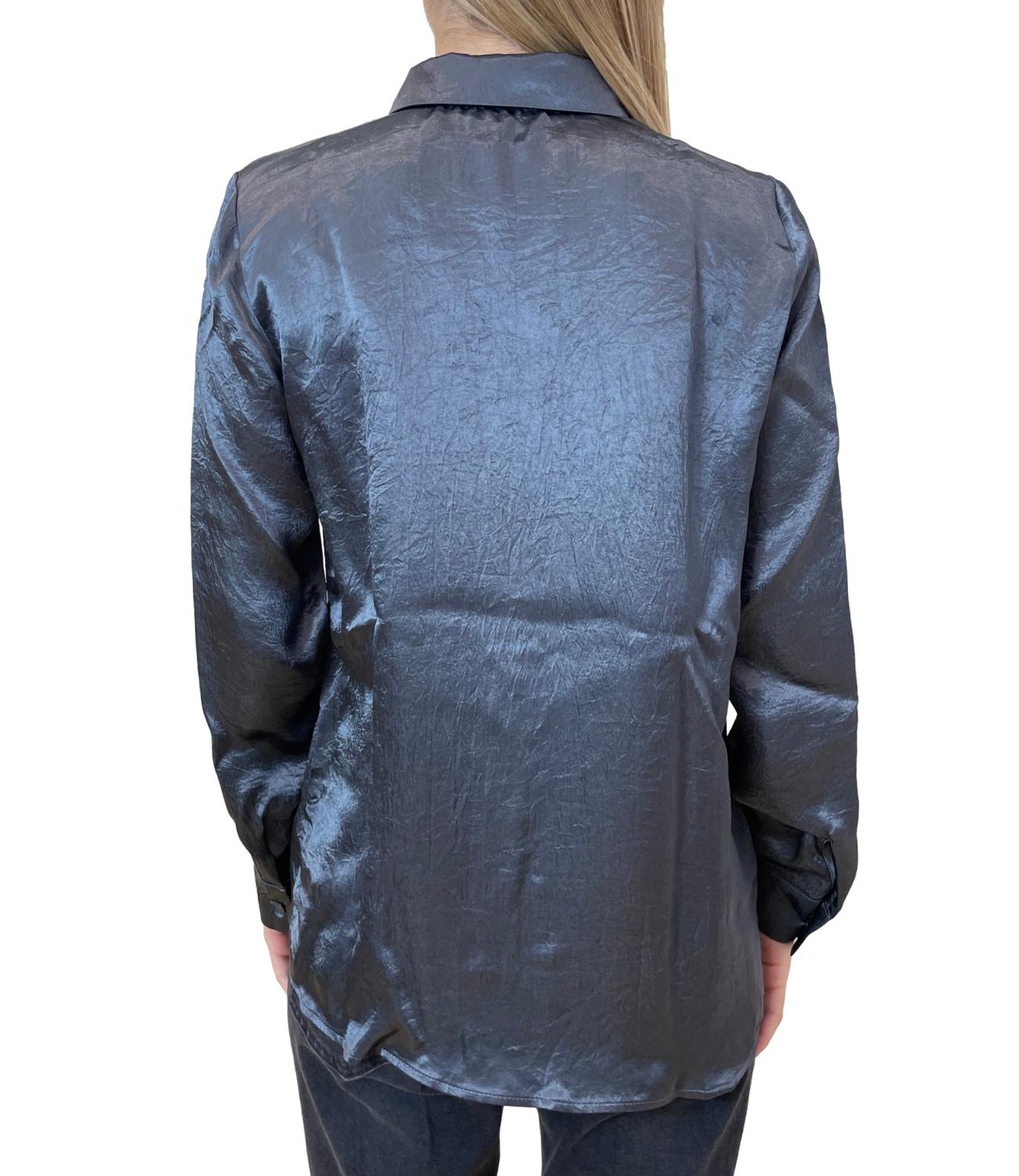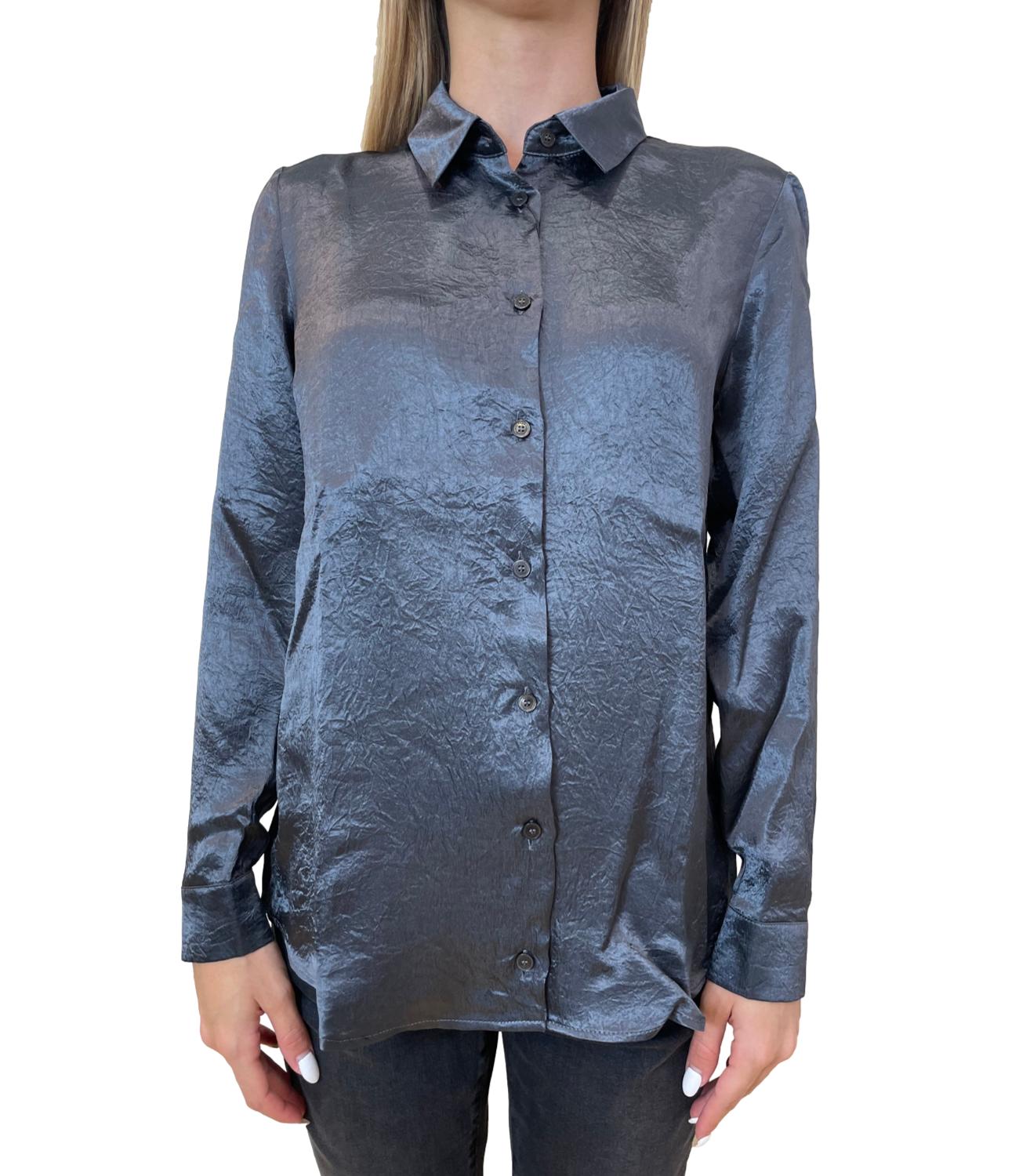 Camicia "Matita" in raso tecnico color antracite dal fit dritto. Modello con collo classico, abbottonatura frontale a vista e maniche lunghe rifinite con bottone al polso. Elegante e versatile, perfetta per look formali o per spezzare outfit casual.