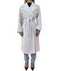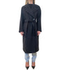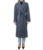Cappotto doppiopetto lungo in misto lana, linea dritta, foderato. Collo a rever, maniche lunghe. Chiusura con bottone interno e cintura coordinata in vita. Tasche a filetto.