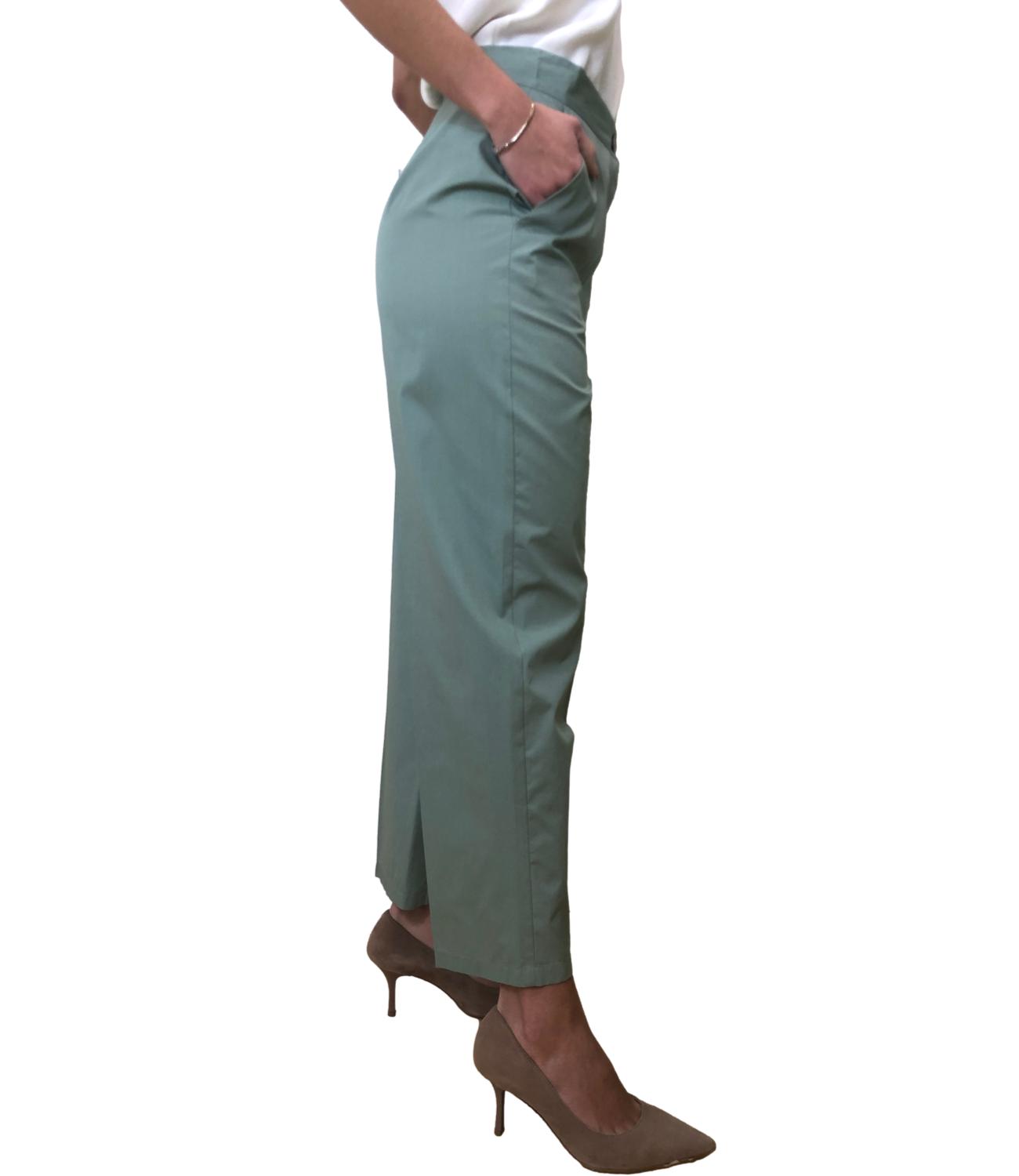 Pantalone dritto Trina di Emme Marella. Pantalone dritto a vita alta in popeline di cotone, lunghezza alla caviglia. Chiusura con cerniera e bottone. Tasche a filo laterali.
