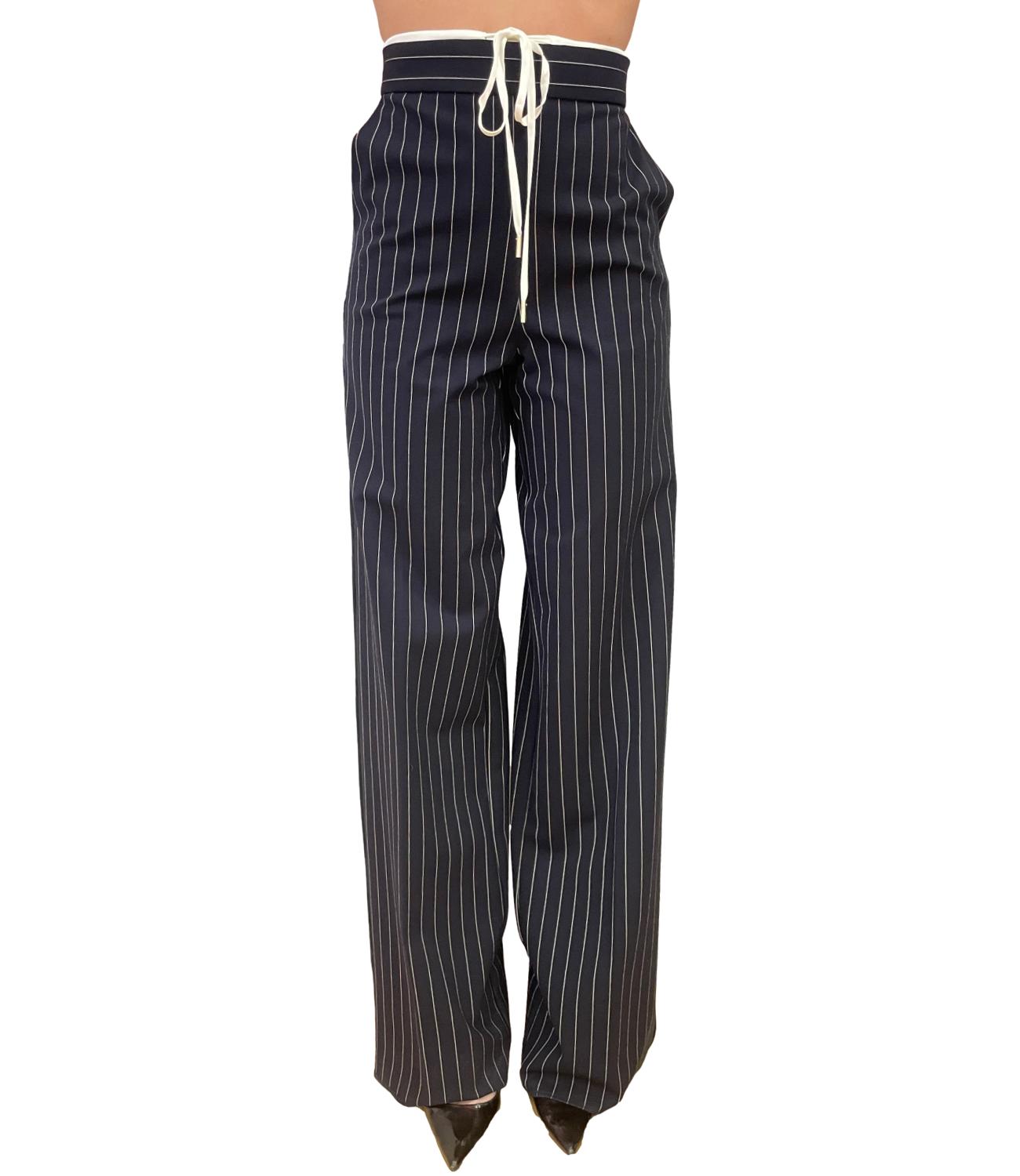 Emme Marella Pantalone Caraffa Blu Gessato Donna