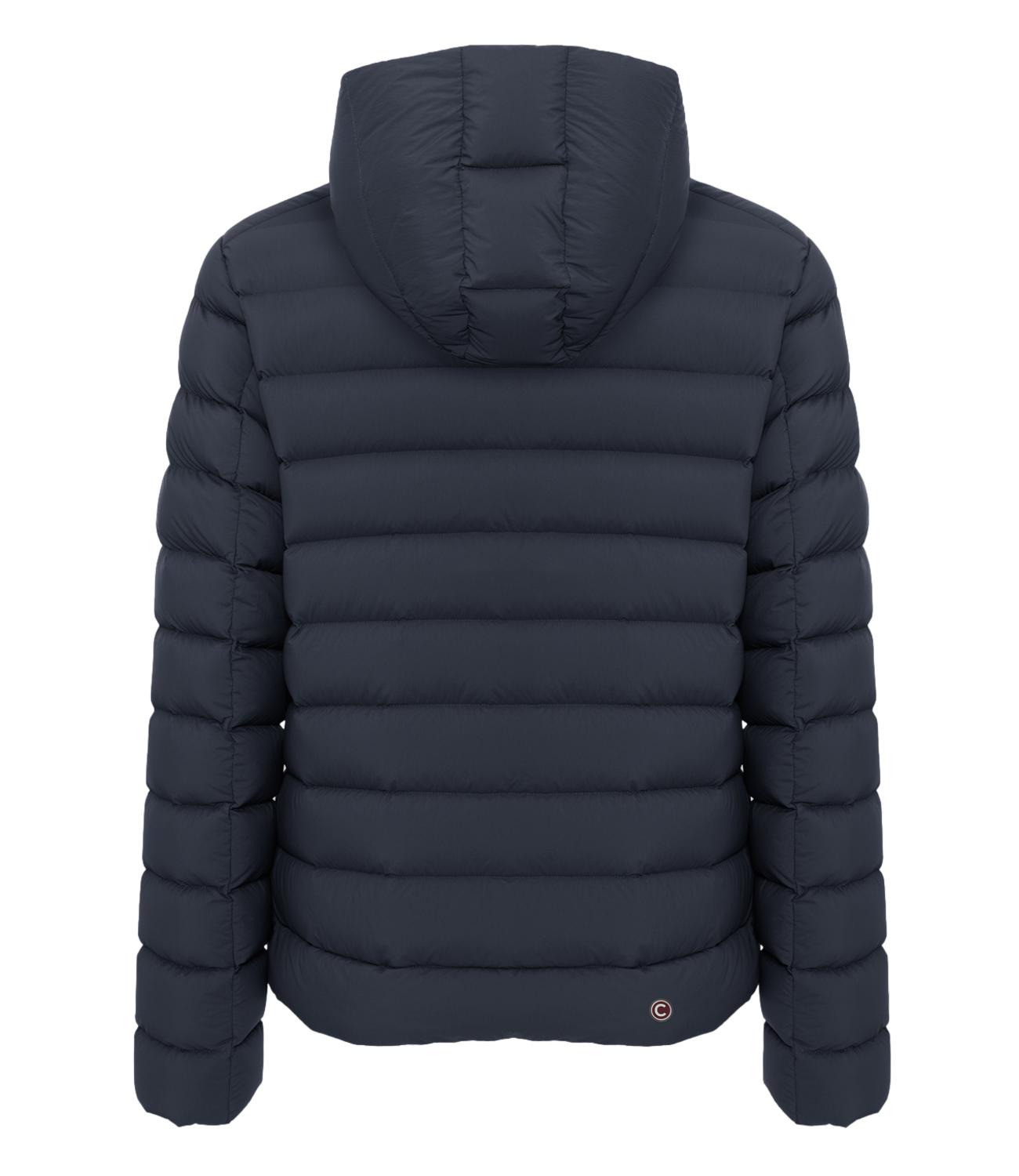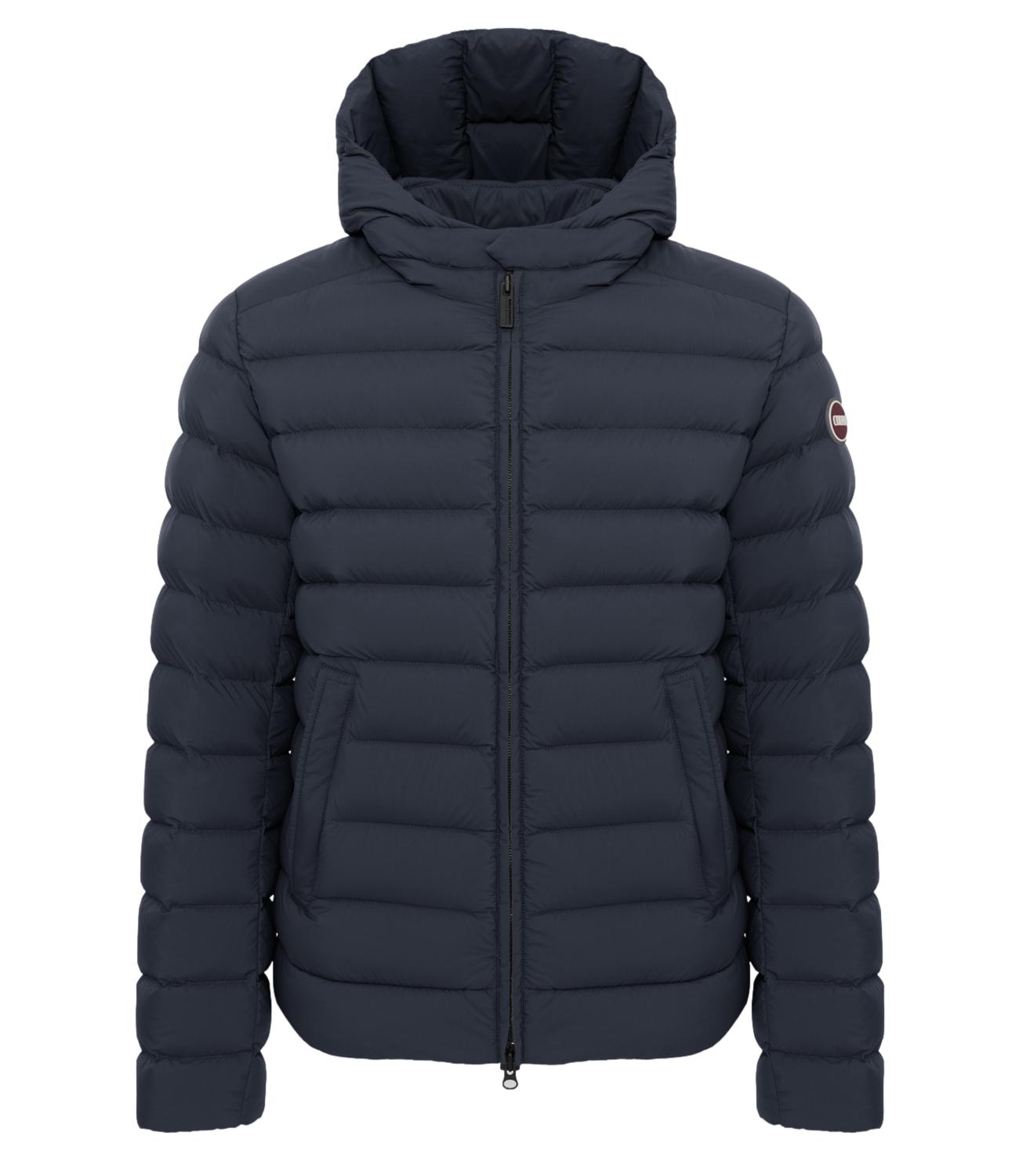 Piumino tecnico idrorepellente con imbottitura in piuma naturale, ideale per climi freddi. Presenta cappuccio fisso, chiusura con zip a doppio cursore e bottone al collo, tasche laterali e interna con zip, coulisse sul fondo e tessuto 100% riciclato. Logo Colmar Originals sulla manica e patch “C” sul retro. Vestibilità regular.