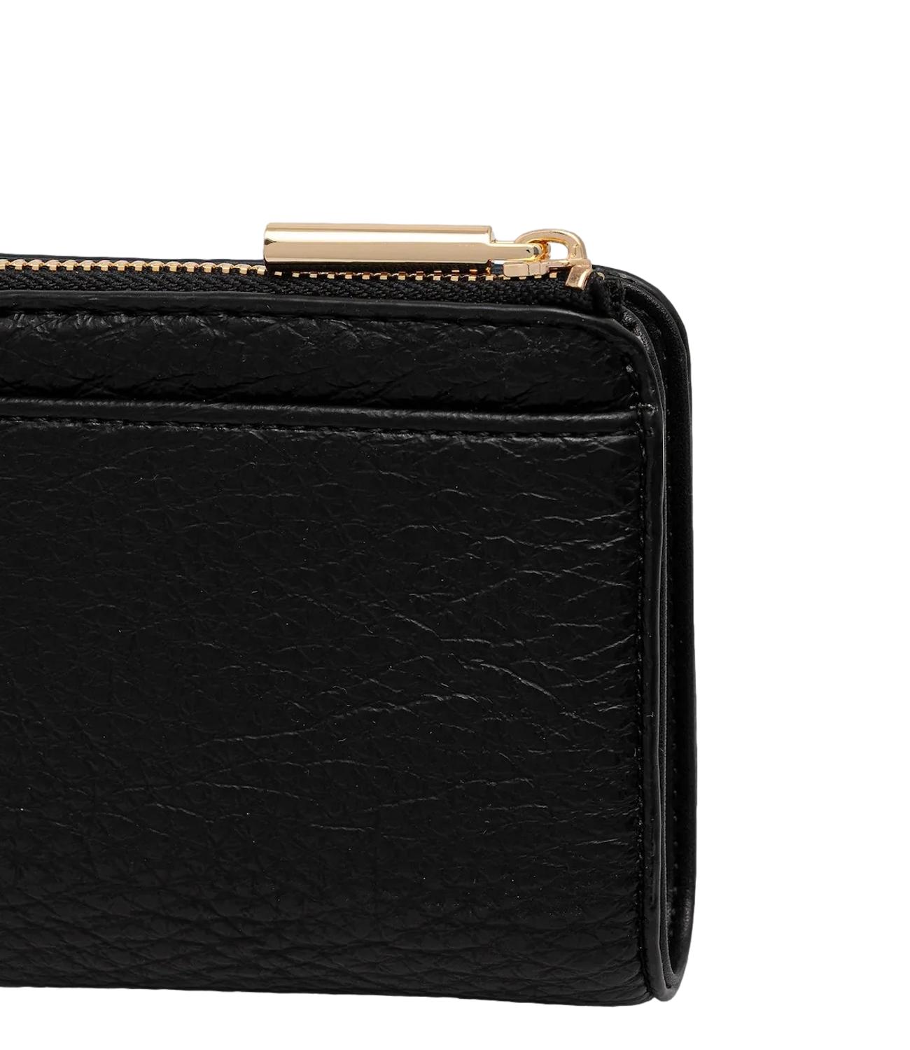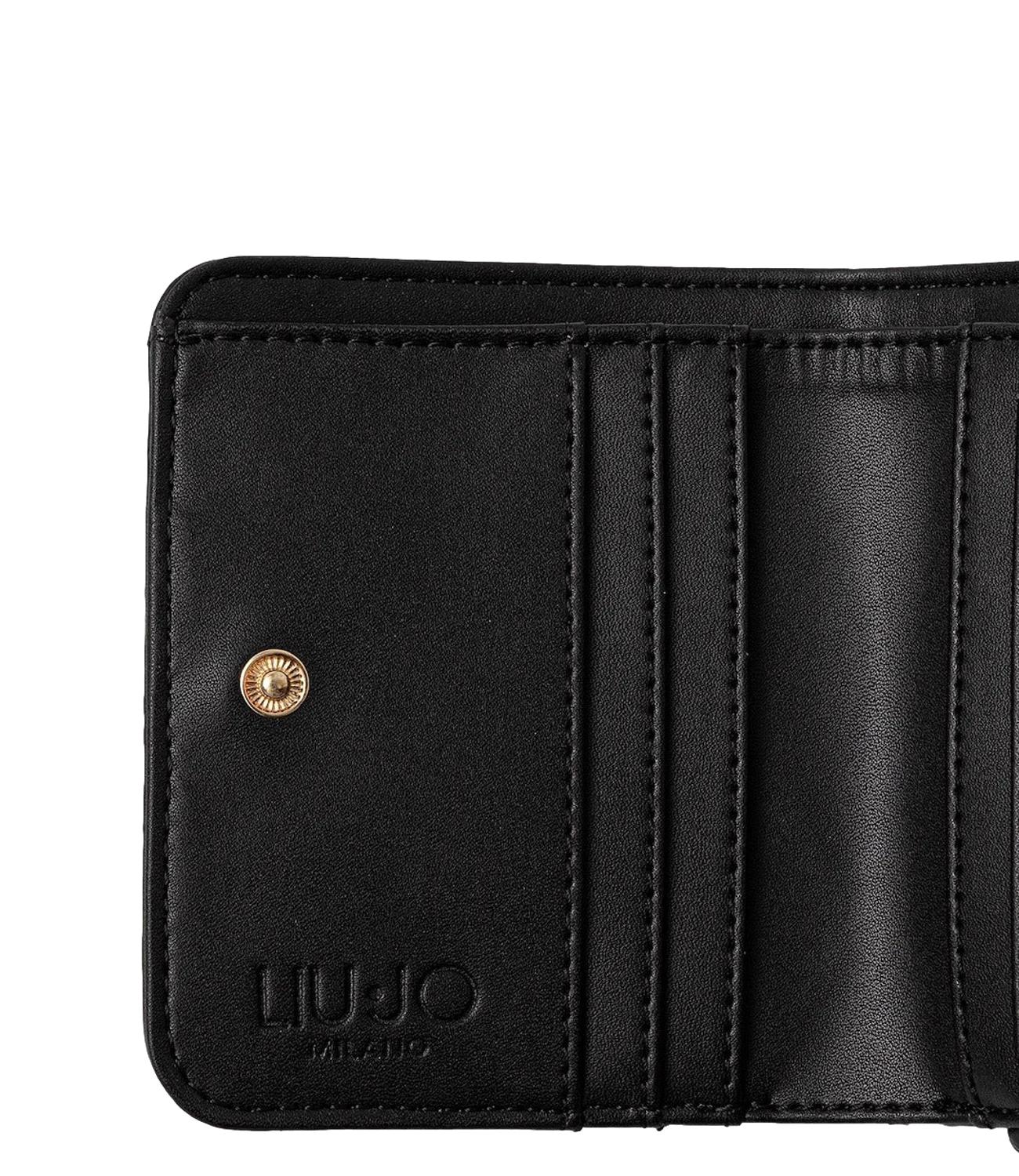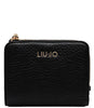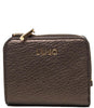Portafoglio Liu Jo Caliwen Credit Card Case da donna in poliuretano martellato a finitura metallizzata, con piccolo logo in metallo dorato, una sezione con chiusura a pressione che si apre su scomparto per banconote e sei tasche per carte e una sezione con chiusura zip ad L e tasca esterna a filo.