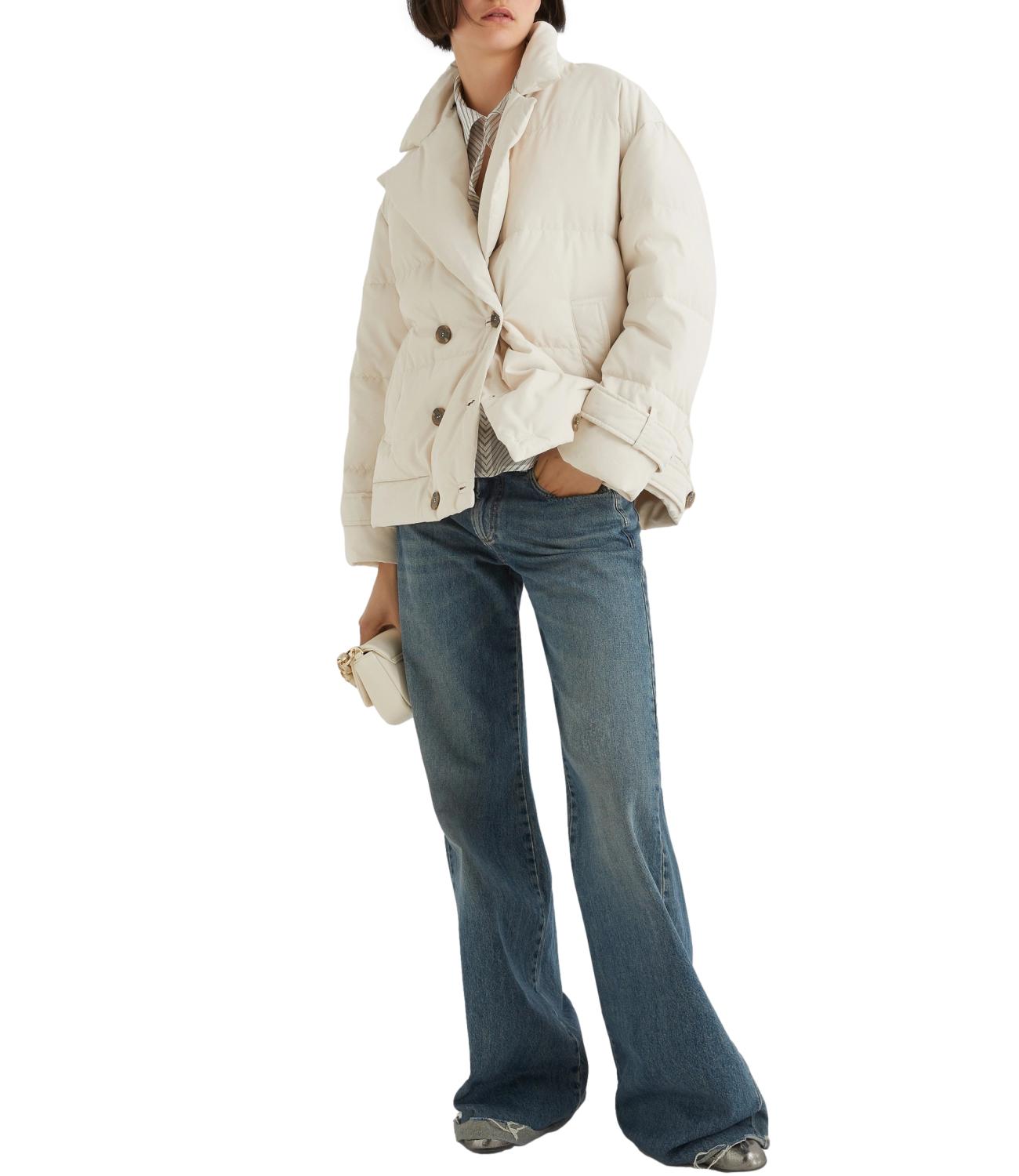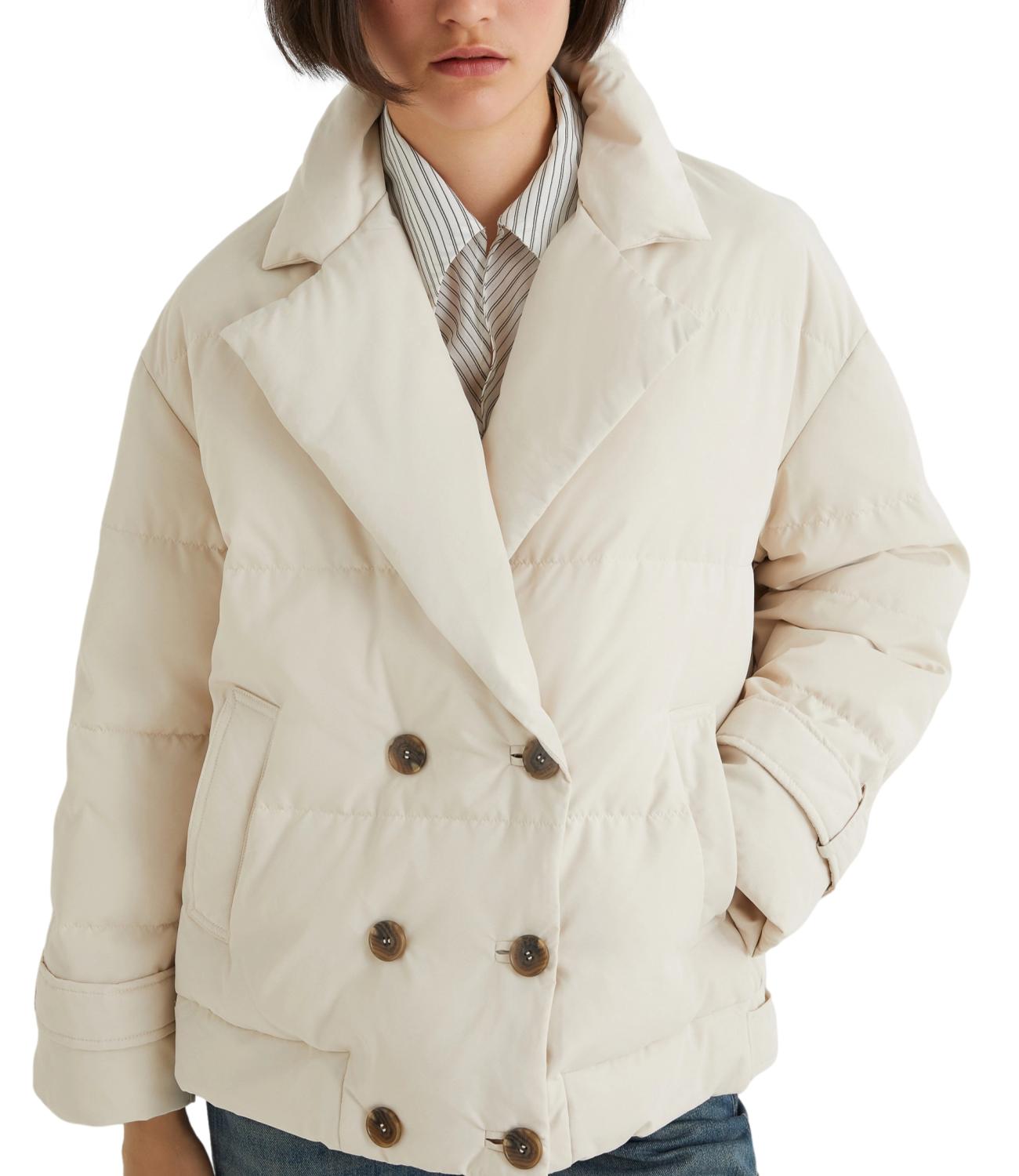 Caban in tessuto antigoccia con imbottitura in piuma d'oca e fodera interna