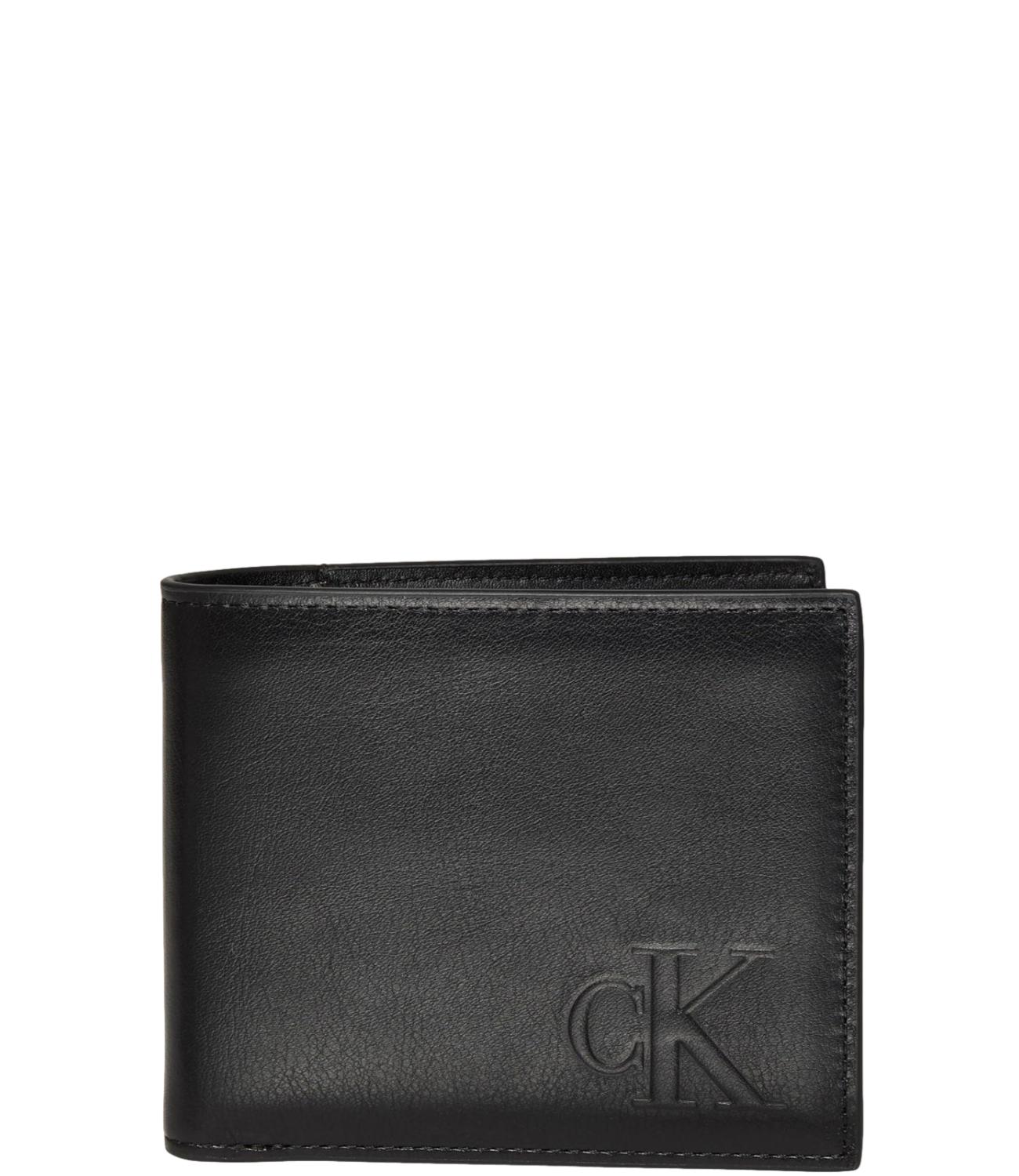 Portafogli Calvin Klein nero in similpelle con logo grande tono su tono, senza portamonete