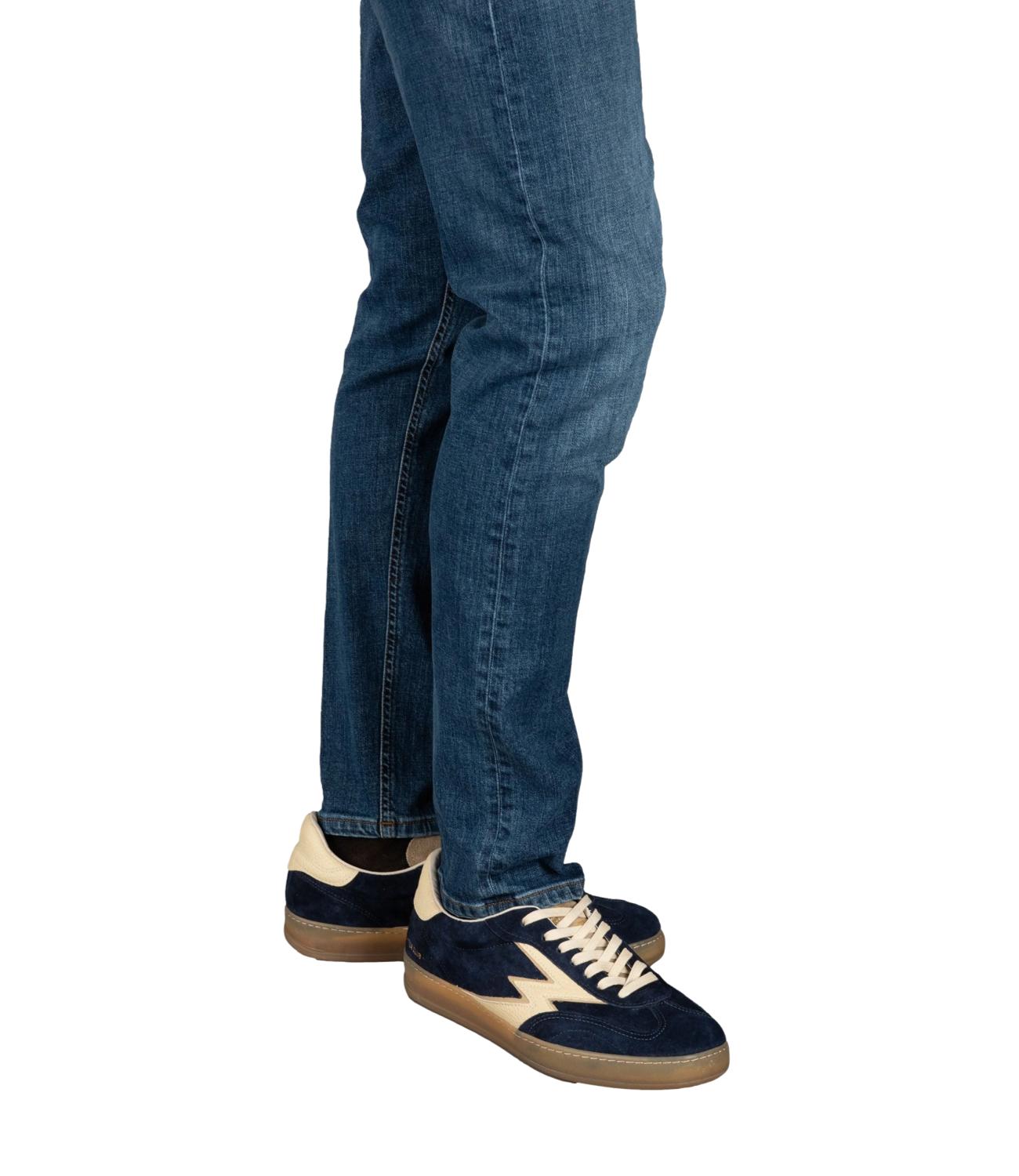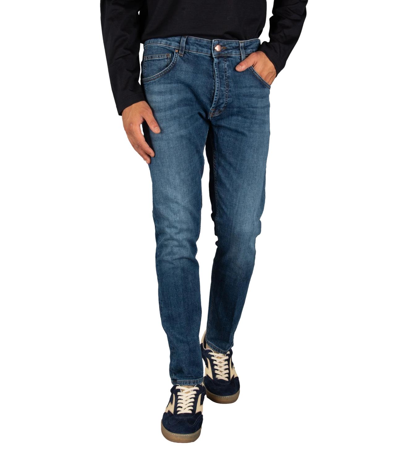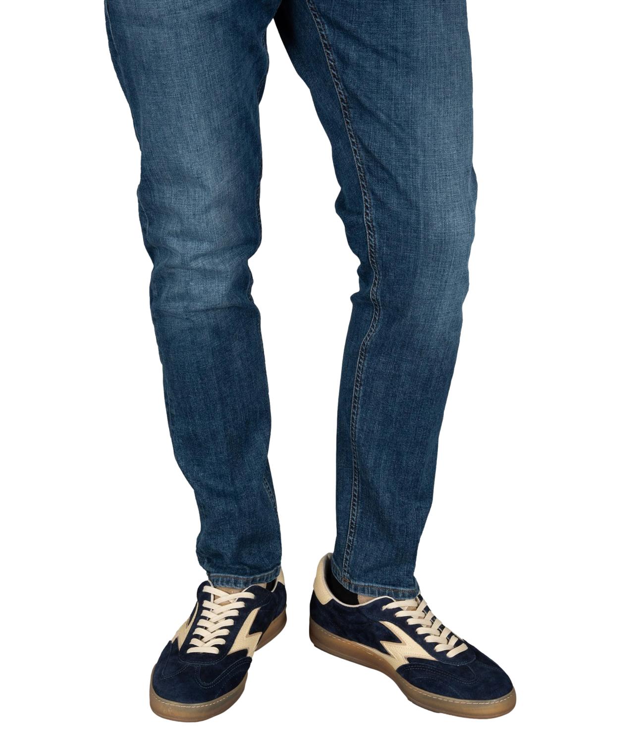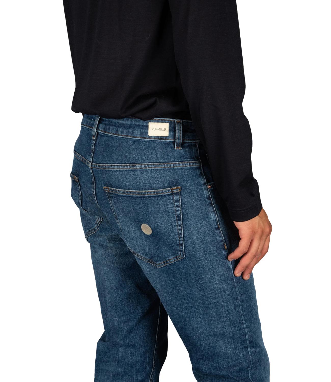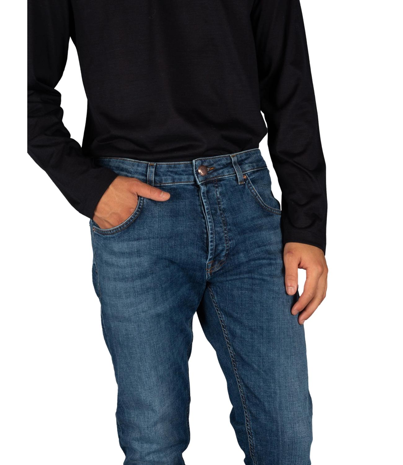 Jeans cinque tasche in denim elasticizzato con lavaggio medio.