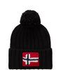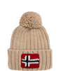 Cappello Napapijri beige chiaro in lana a coste con pon pon e bandiera Norvegia, cappello beanie unisex uomo donna caldissimo