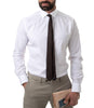 Camicia per cliente attento al look e alla qualità realizzata con tessuto in cotone ed elastan per rendere più confortevoli i movimenti, l'elegante collo francese, l'assenza di taschino e il pratico fessino con bottone.